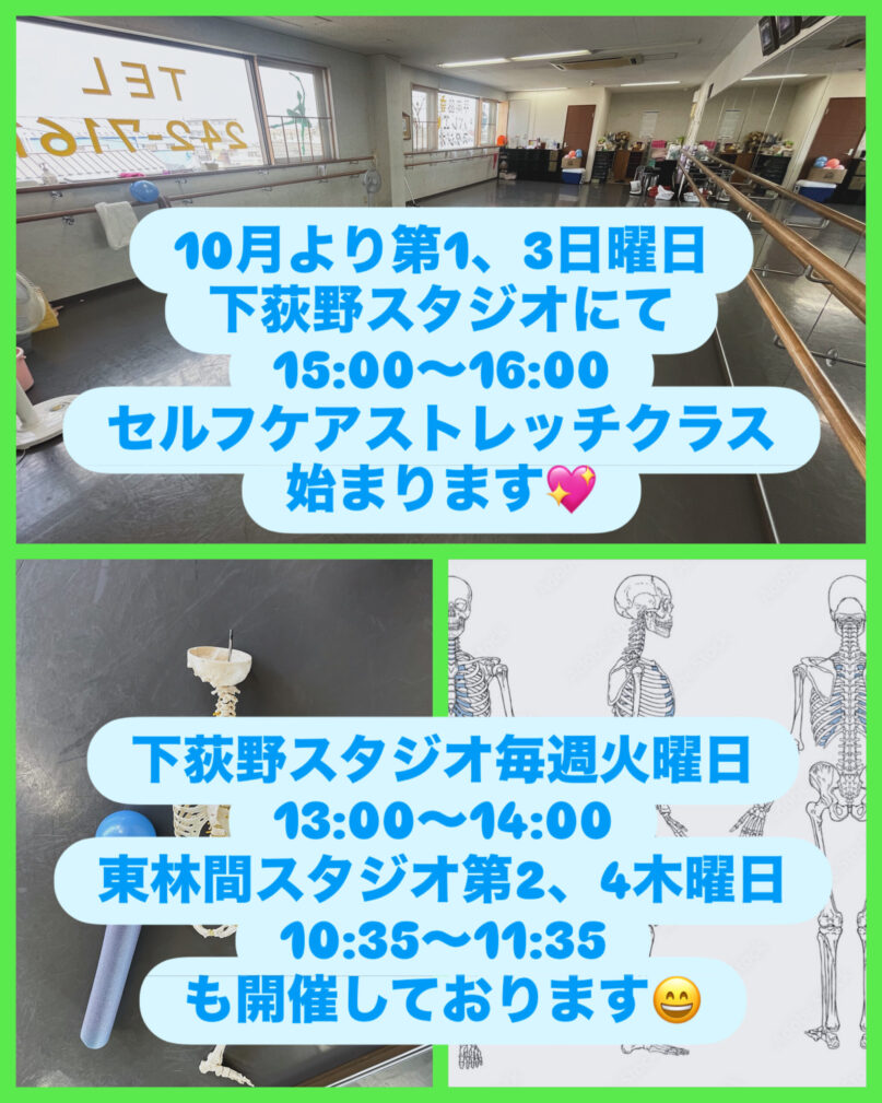 11月より、第2、第4木曜日、セルフケアストレッチクラス東林間スタジオ(スタジオカベリ)決定しました! 固まった身体をゆっくり動かしませんか?